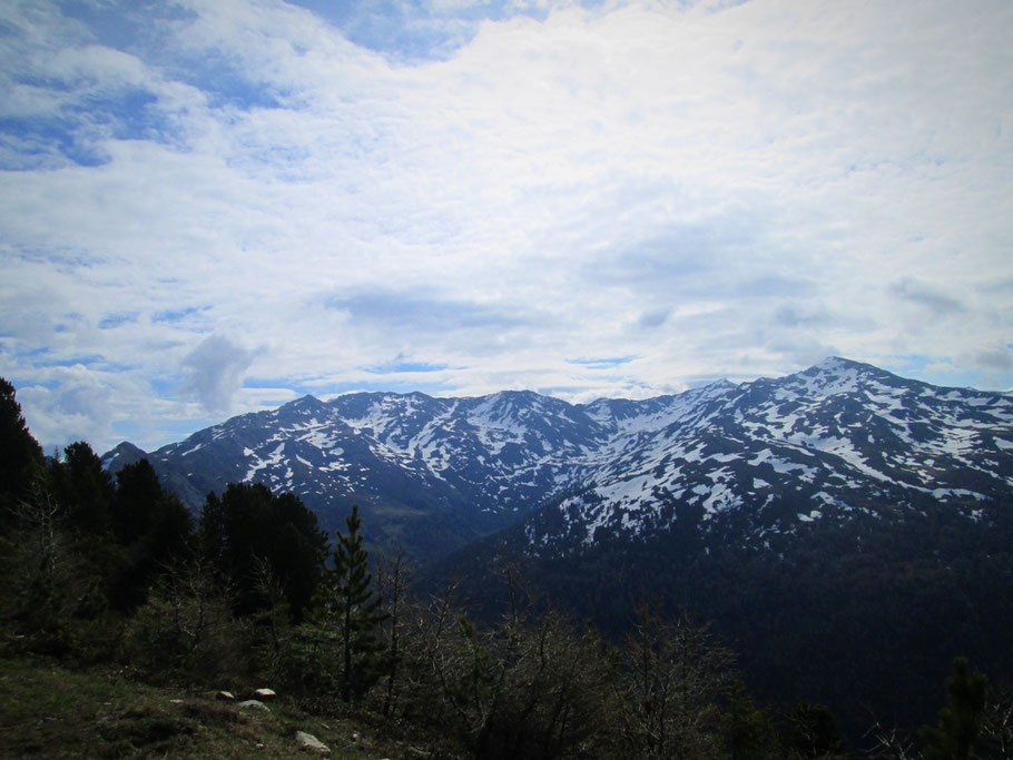 Im Süden zeigt sich die Nordseite des Morgenkogel noch mit Schneeresten. Links der