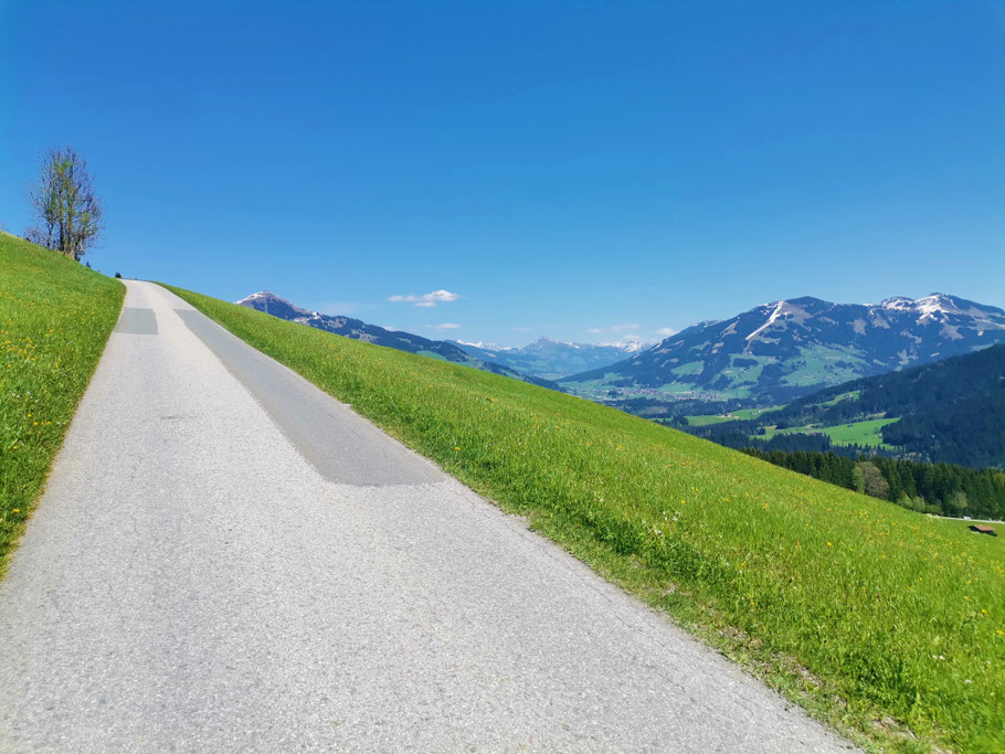 Los geht meine Tour an diesem herrlichen Mai-Tag mit knapp 30 Grad direkt in Niederau. In einer lang gezogenen Kurve umrunde ich erst das Markbachjoch, ehe ich es