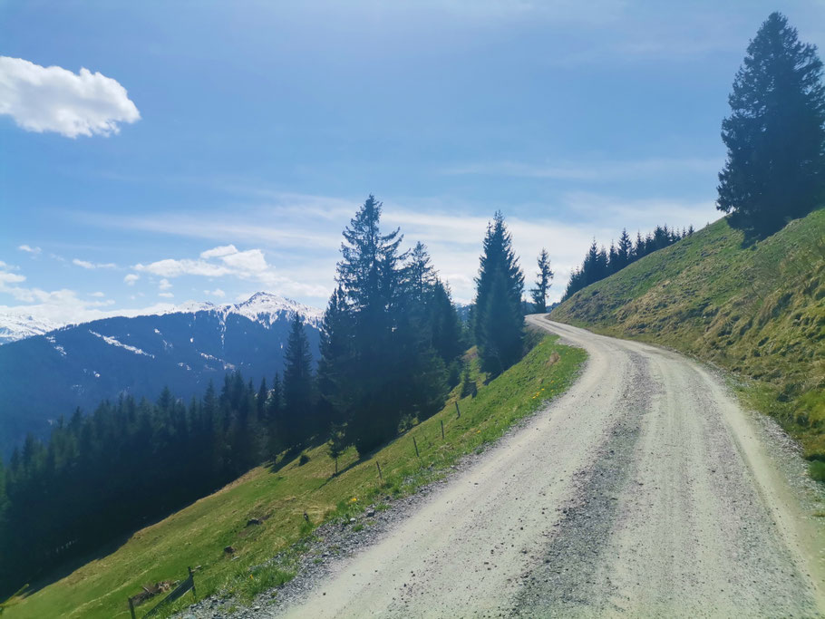 Die Abzweigung zum Panorama-Hotel nicht verpassen, danach wartet der steilere Abschnitt vom Penningberg zum Markbachjoch.