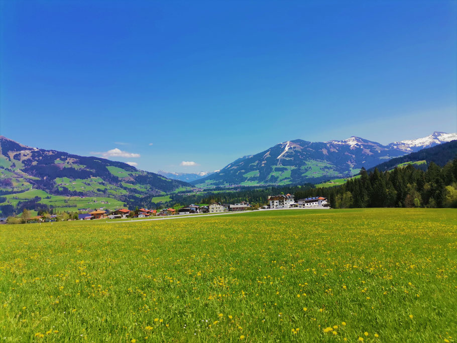 leider charakteristischen Löwenzahn-Wiesen auf das Brixental.