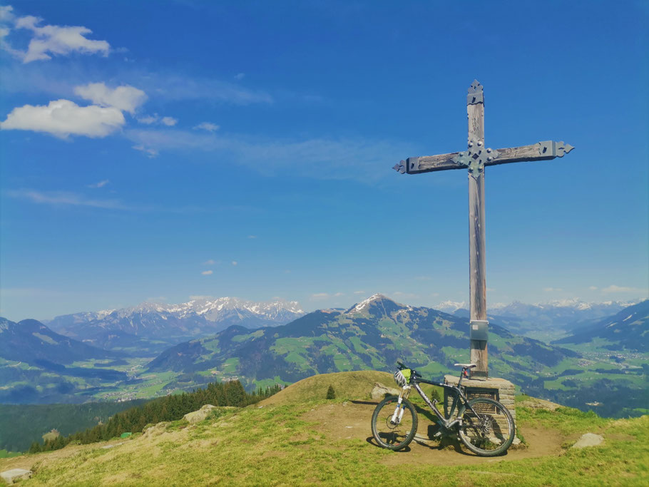 Über seine sonnige, ruhige und ungemein aussichtsreiche Südseite ist das Markbachjoch (1496 Meter) eine äußerst lohnenswerte Angelegenheit. Der kleine Skigebiets-Gipfel in den nördlichen Kitzbüheler Alpen bietet dank seiner weitreichenden Almwiesen viele Weitblicke in die benachbarten Täler und Gebirge an. Los geht die Mountainbike-Tour dabei direkt in Niederau (826 m) und führt über den Mittermoosboden zum Penningberg, von wo aus die Auffahrt auf der Fahrstraße (kostet im Sommer satte 22 Euro Maut mit dem Auto!) zum Markbachjoch wartet. Die etwas steilere Abfahrt zieht sich über die Nordseite vorbei am Tennladen wieder talwärts.