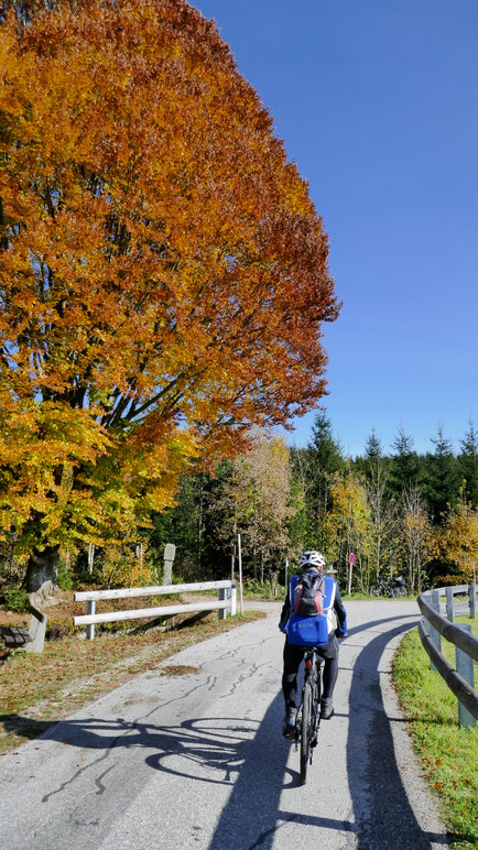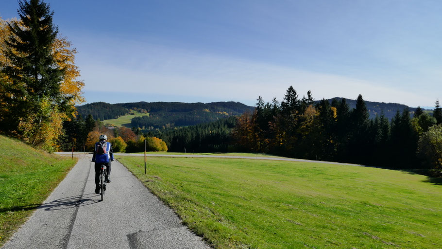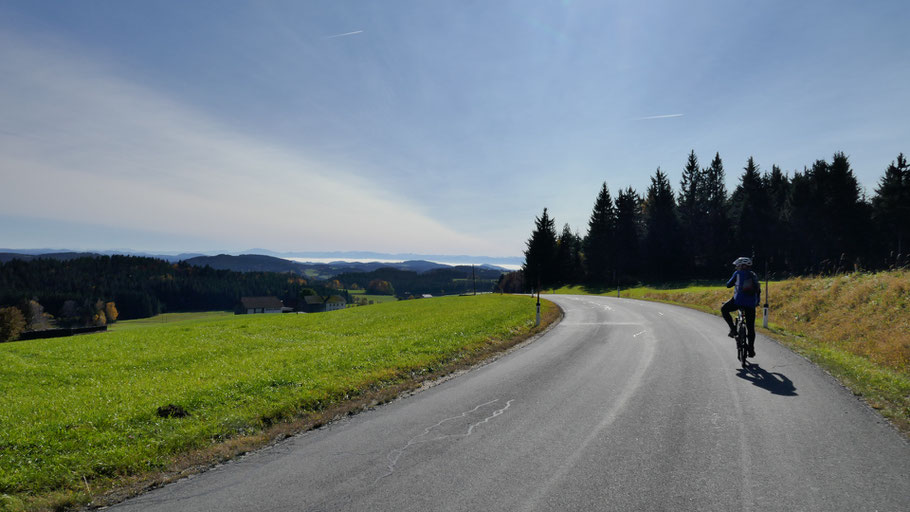 Vom Wald- ins Mühlviertel, und das an einem goldenen Herbsttag mit Fernsicht bis in die Alpen. Mein Vater und ich genießen die urige Mittelgebirgslandschaft, für mich persönlich eines der schönsten Bikereviere Österreichs.