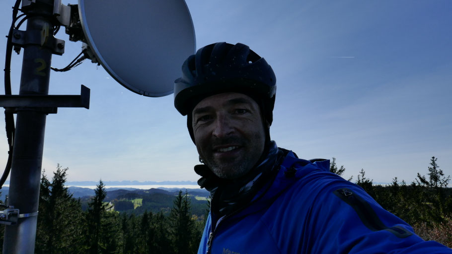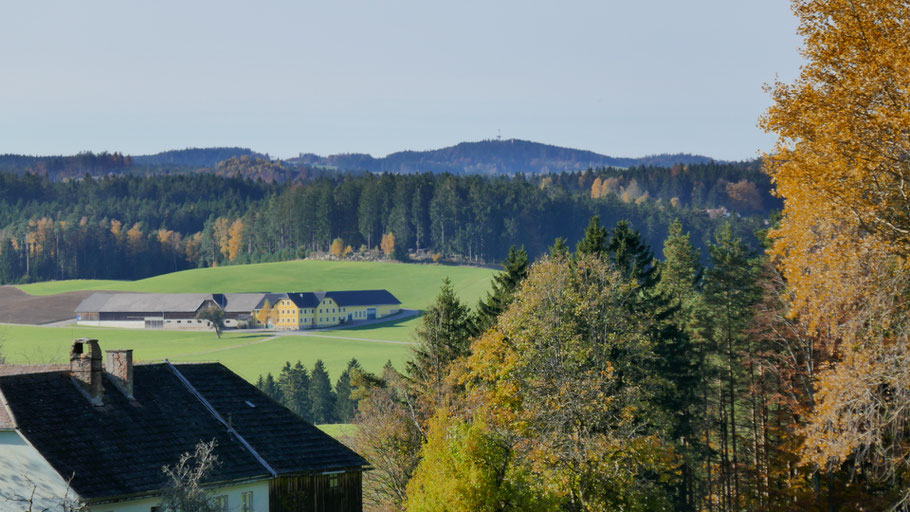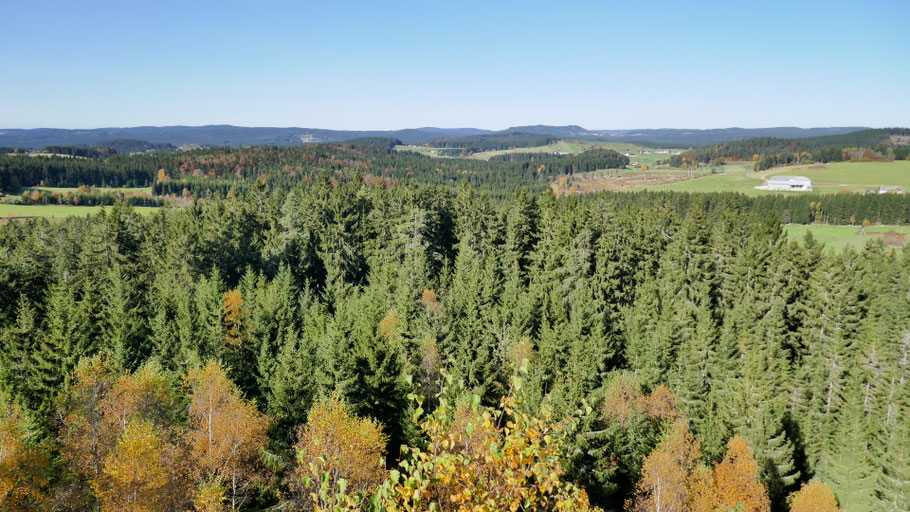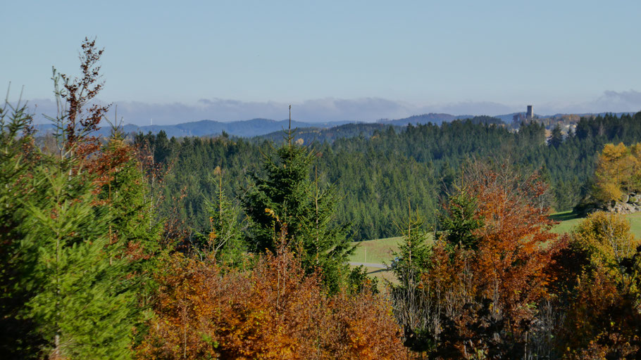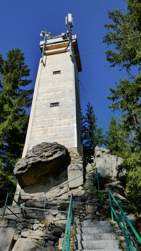 Mit Fernglas lassen sich Tischberg (1.063m), Vysoka (1.034m) und Nebelstein (1.017m) ausmachen.