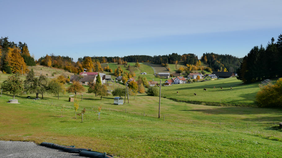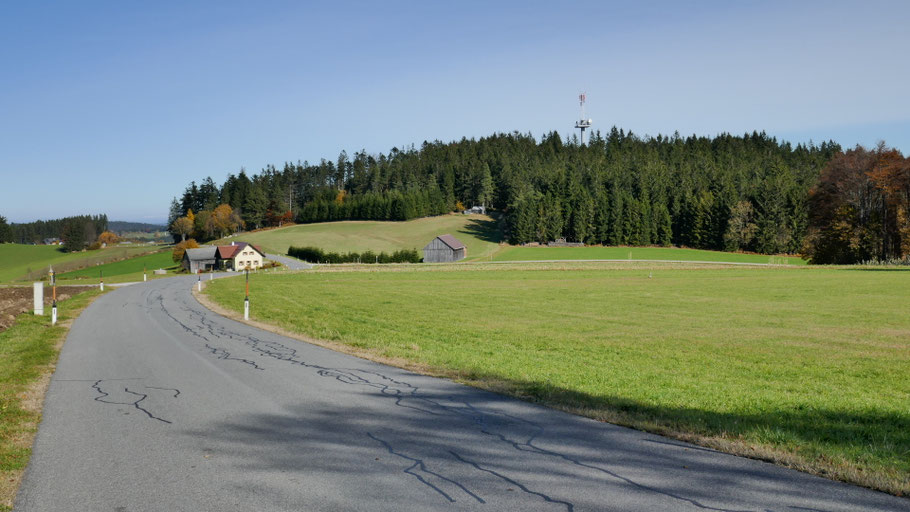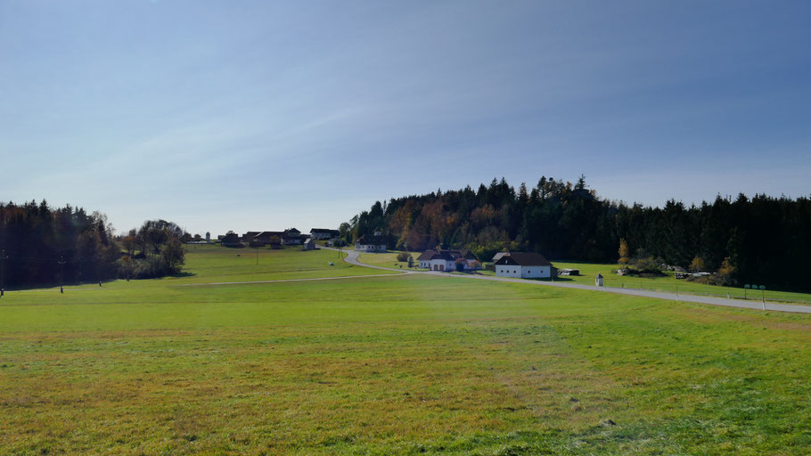 Km 48. Wir durchfahren den Weiler Geierschlag. Mehr Landschaft als Häuser.