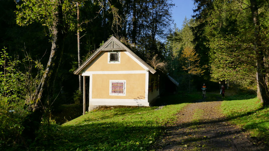 Ich komme zur Klauskapelle. Dieses Häuschen hat eine illustre Geschichte und hat sich von einem Lusthaus in eine Kapelle verwandelt (siehe Bericht von Zwalk). Drei Mal die Glocke läuten bringt Glück, wir sind ja nicht umsonst in der als "Kraftarena" beworbenen Region.