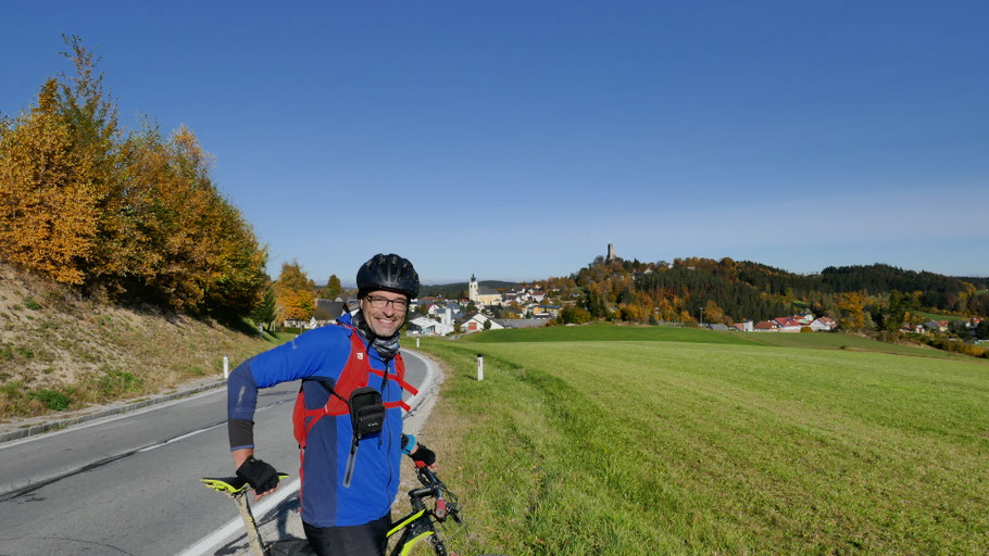 Wir streifen den Schneiderberg und erkennen die Ruine Arbesbach, den 'Stockzahn des Waldviertels'.