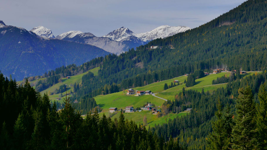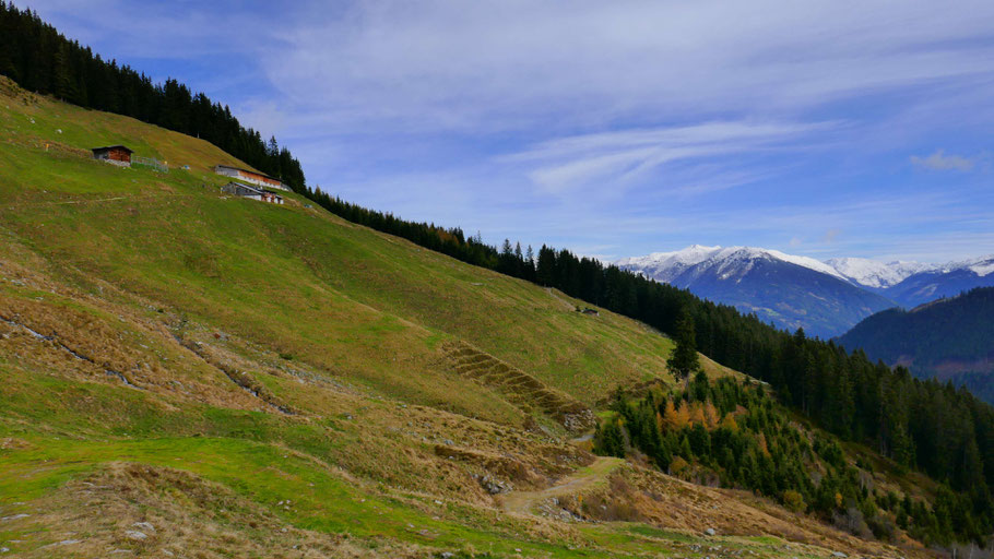 Ich verlasse diesen wenig einladenden Ort und quere hoch über Fügen im Zillertal hinüber Richtung Geolsalm.