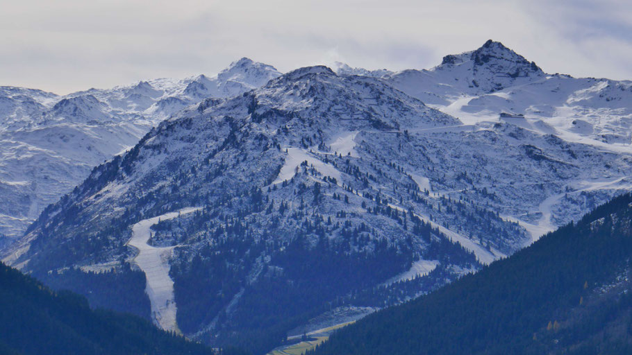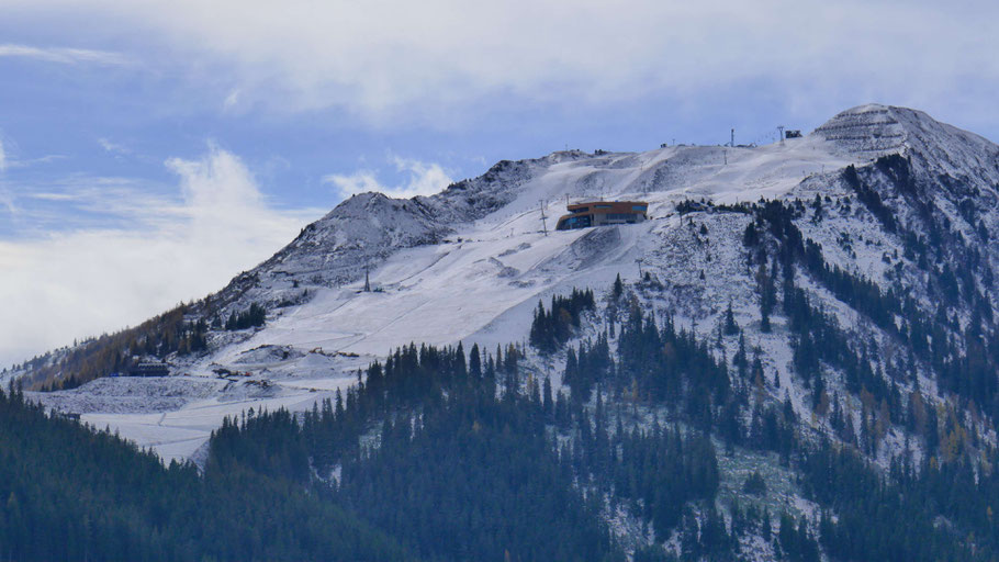 Das Skigebiet Hochfügen schon mit erster Unterlage für den Winter. Es sind ja auch schon die ersten Tourengeher unterwegs.