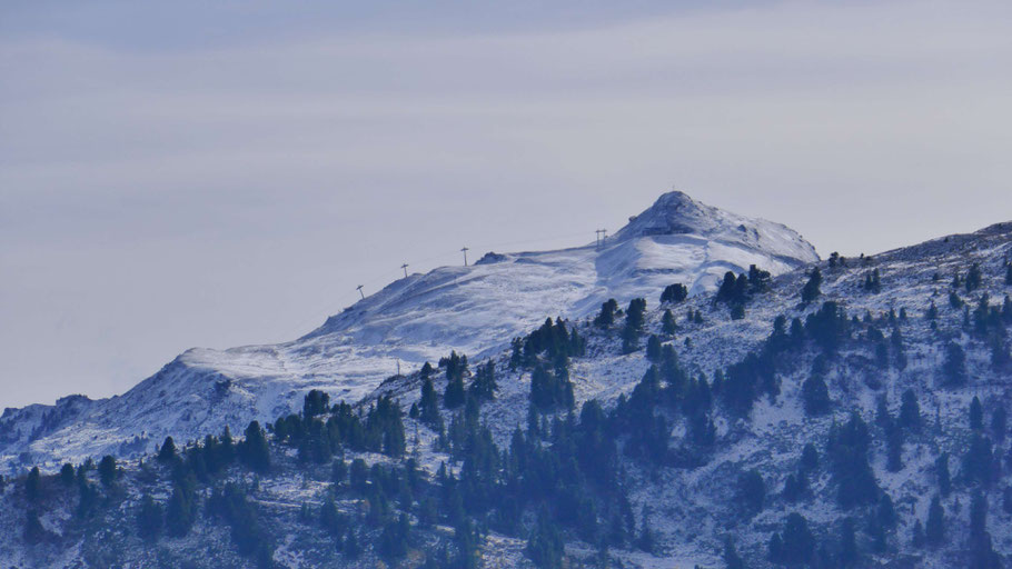 Im Zoom der Rastkogelkamm mit Pfaffenbichl (2.431m, rechts), dem vor wenigen Wochen besuchten Kleinen Gilfert (2.381m, mittig) und Rosskopf (2.576m).
