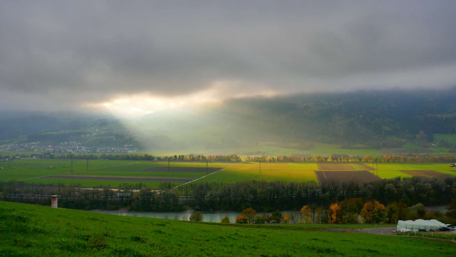Wie so oft im Herbst 2017 morgens noch Wolkenreste. Über Kolsass im Inntal aber bereits erste Sonnenstrahlen.