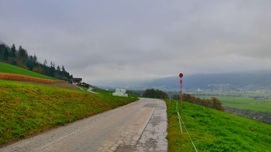 Oberhalb von Schwaz beginnt der Anstieg. Zuerst weiter auf Asphalt hinauf nach Gallzein.