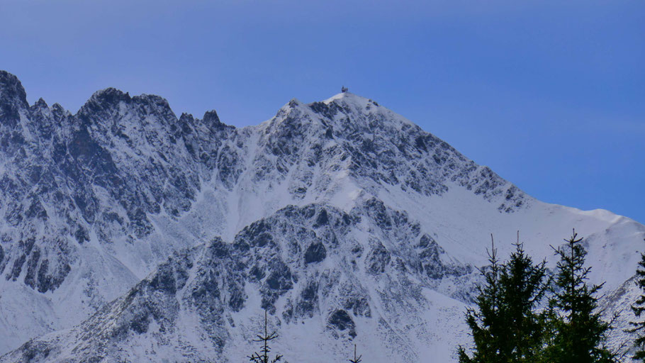 Der Gilfert (2.506m) lässt sich davon aber nicht beeindrucken. Wobei dieser und das vorgelagerte Sonntagsköpfl (2.244m) an schönen Wintertagen auch von Tourengehern gestürmt werden.