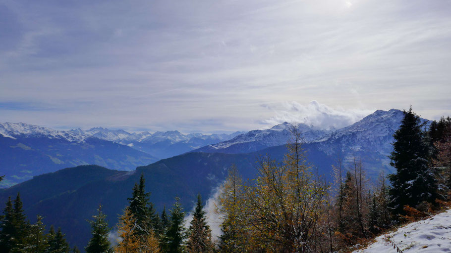 Ich drehe auf die Südseite des Kellerjochs. Nach Süden ein wundervolles Panorama Richtung Zillertaler Alpen.