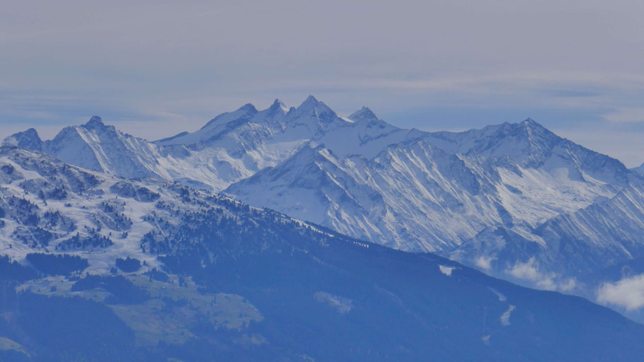 Vor allem die Reichenspitzgruppe mit Reichenspitze (3.303m) und Gabler (3.263m) tritt hervor.