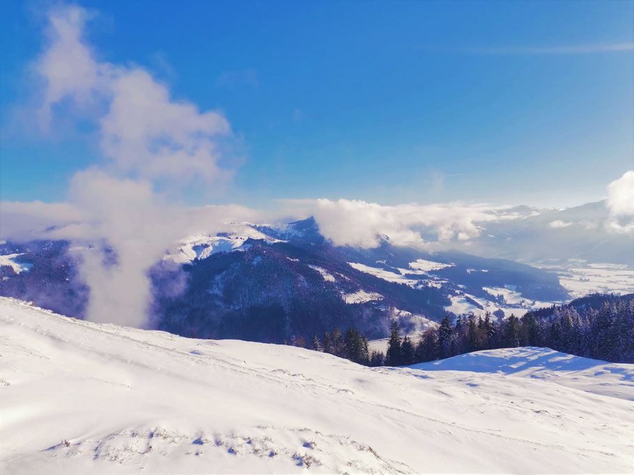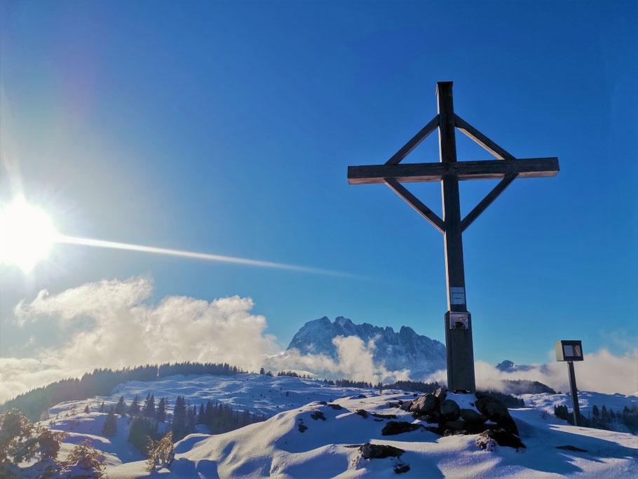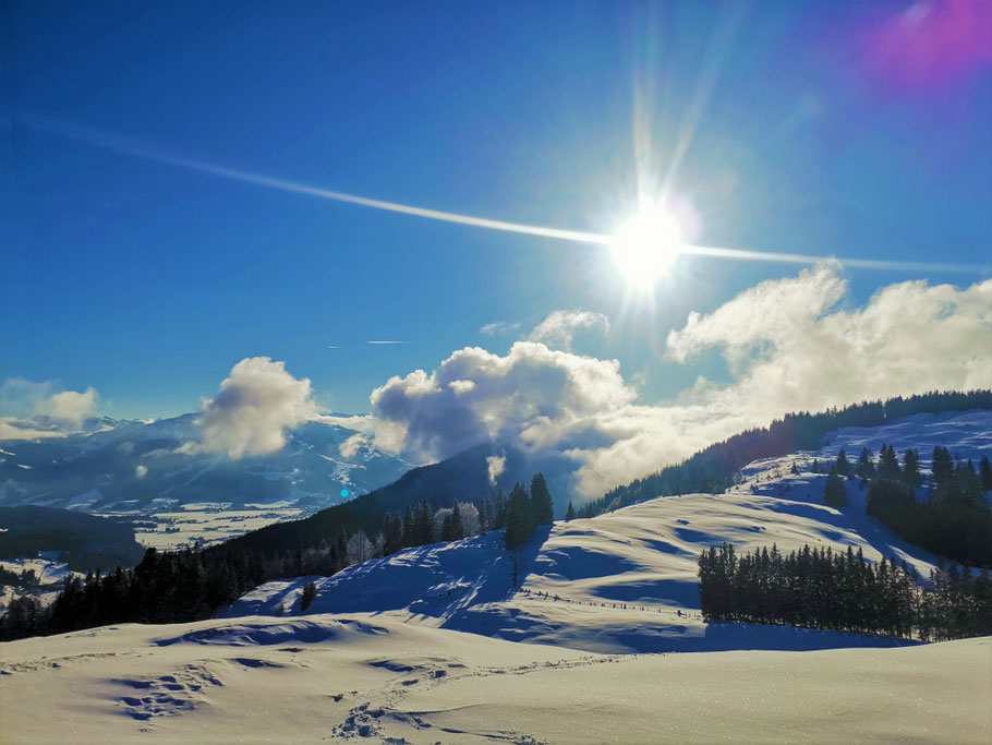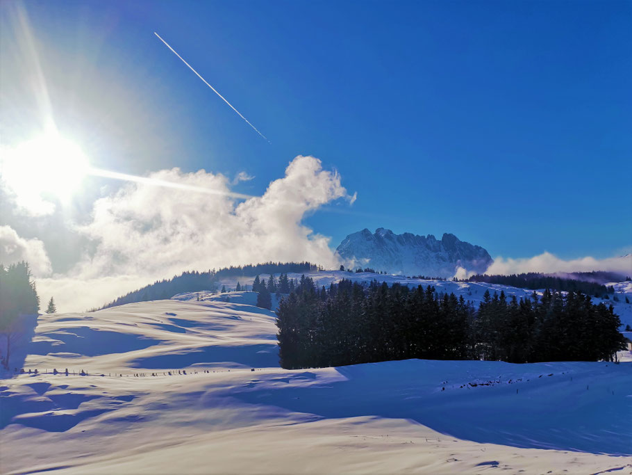 Ein kleiner Wintertraum: Blick vom Prostkogel (1244 Meter) auf den Wilden Kaiser.