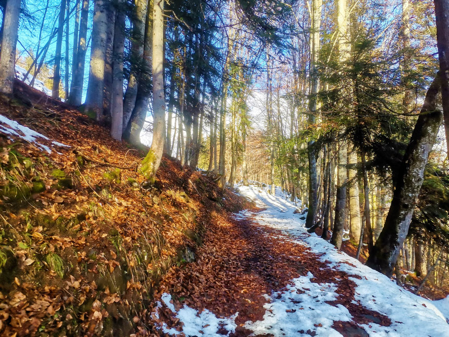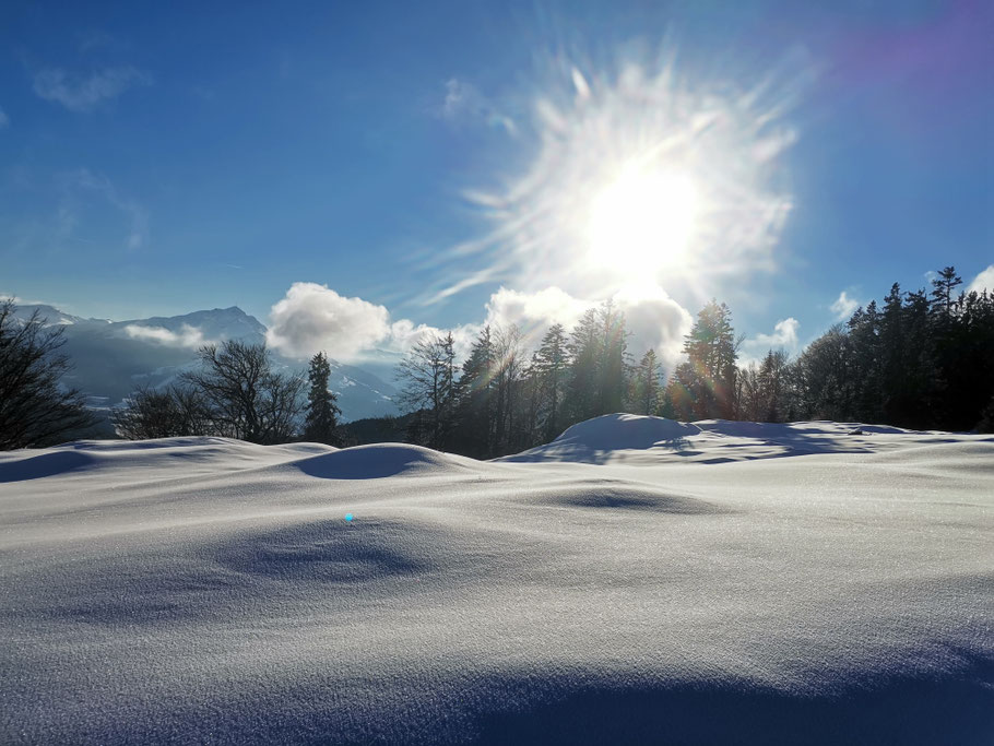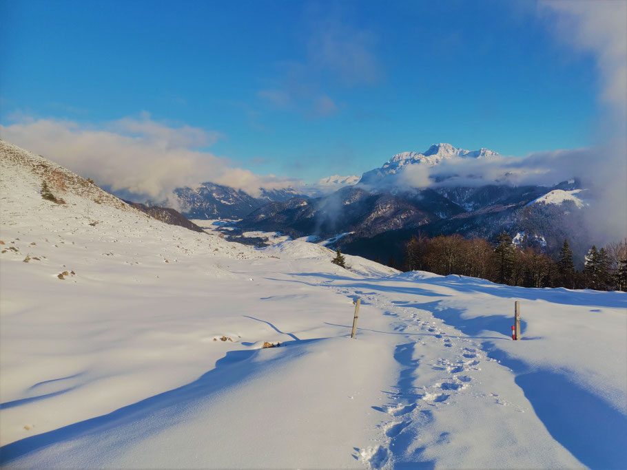 sollte viel Schnee liegen, eignen sich Schneeschuhe hier für eine lässige Aufstiegsvariante.