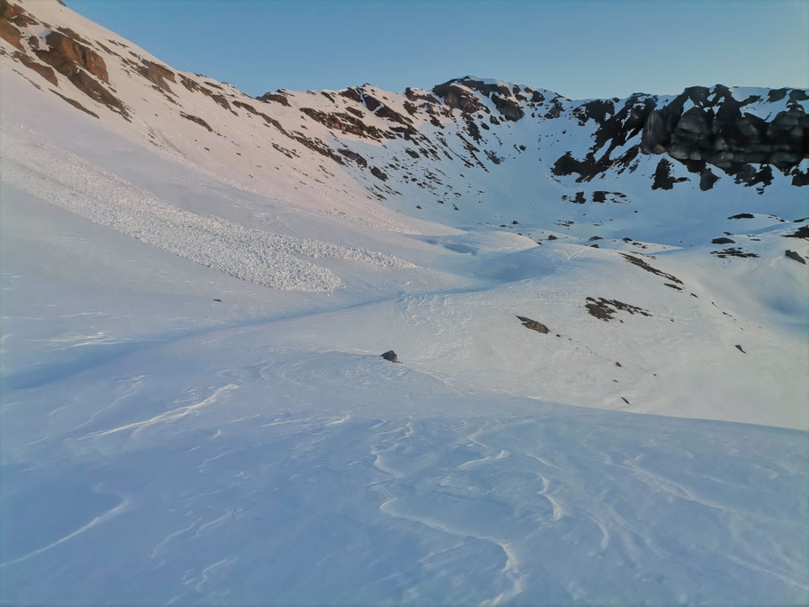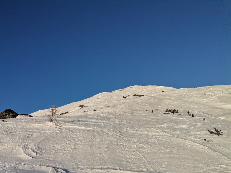 Ein paar Hangrutscher vom Vortag zeigen, dass die steilen Hänge der Hammerspitze mit einiger Vorsicht zu genießen sind.