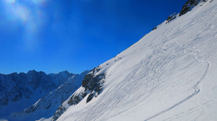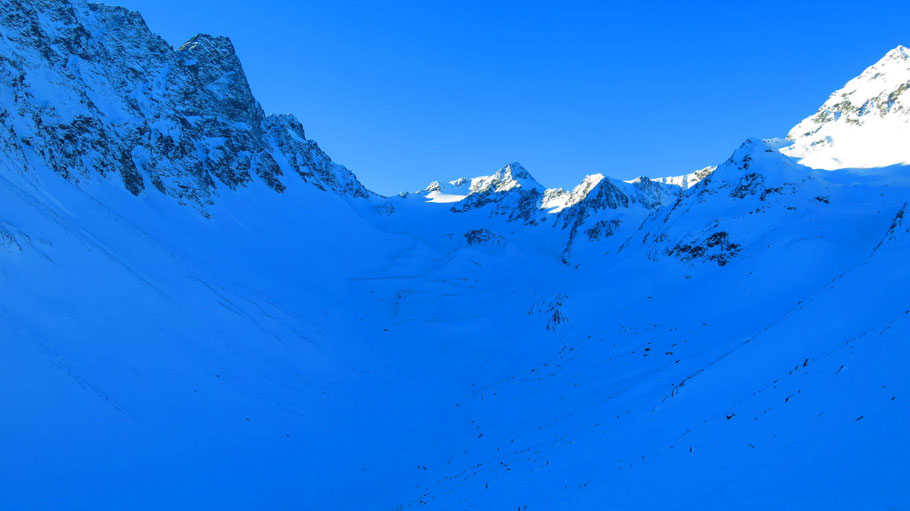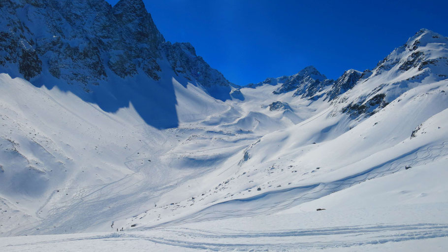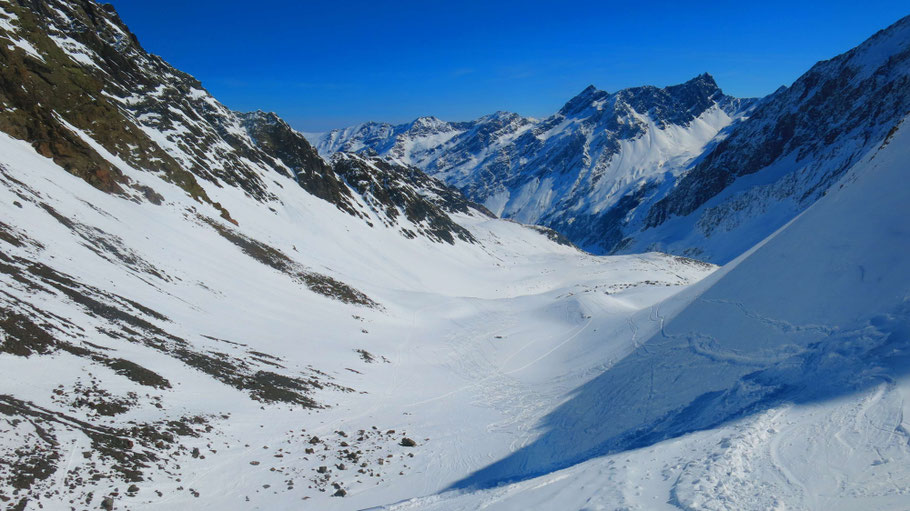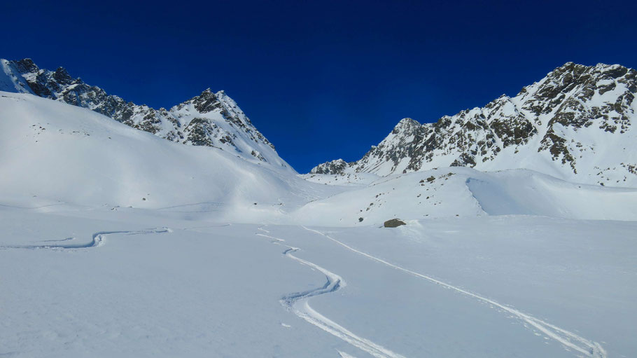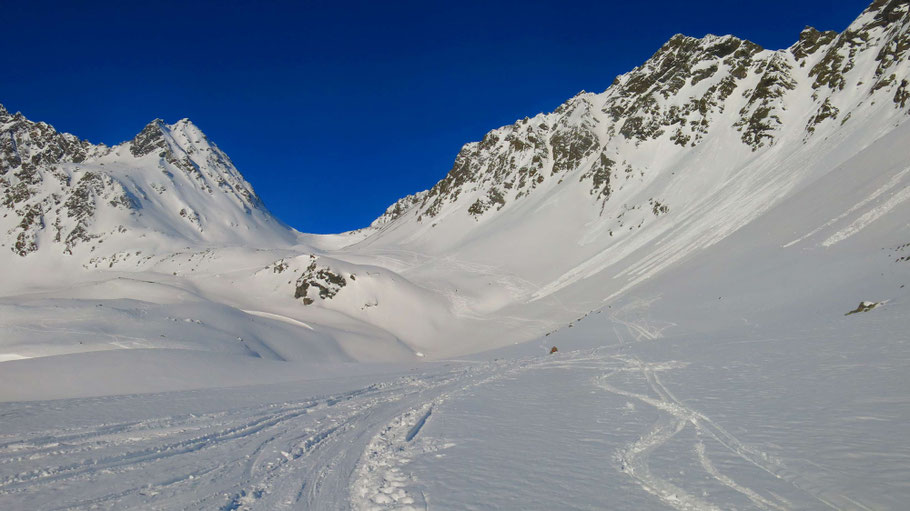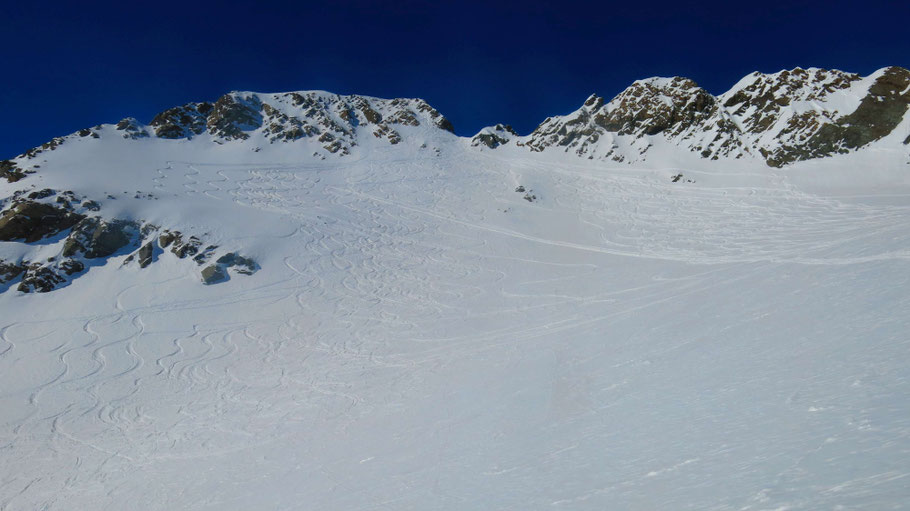 Retour durch das weite Ochsenkar. Rechterhand gab's noch genug Platz für eigene Spuren.