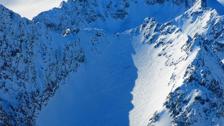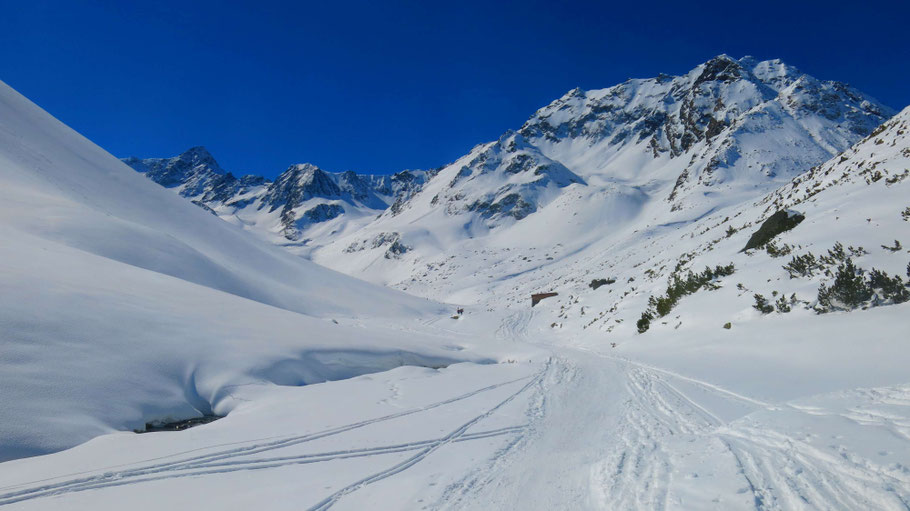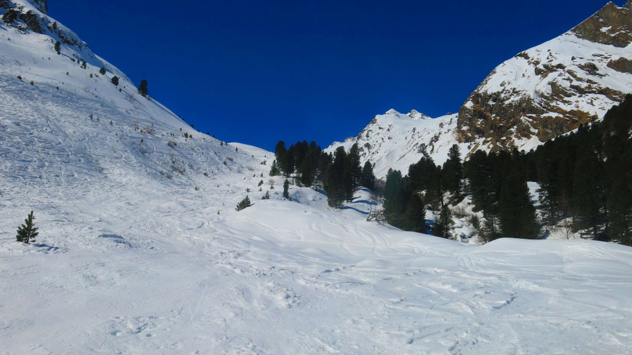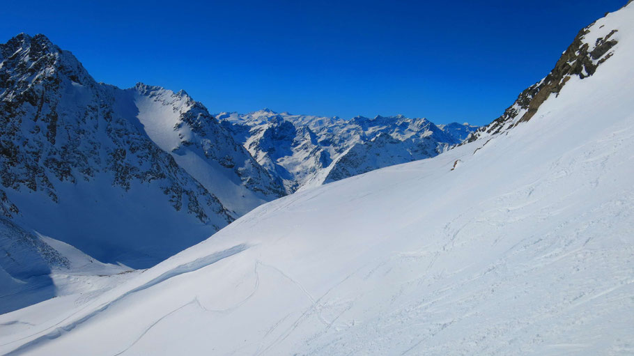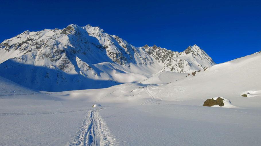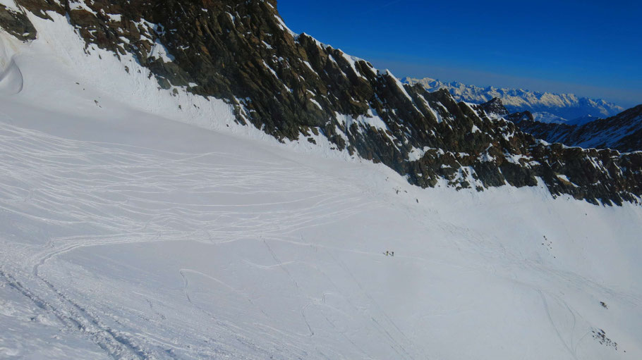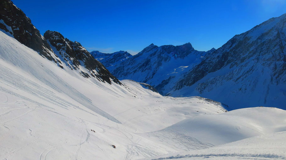 Retour durch das weite Ochsenkar. Rechterhand gab's noch genug Platz für eigene Spuren.