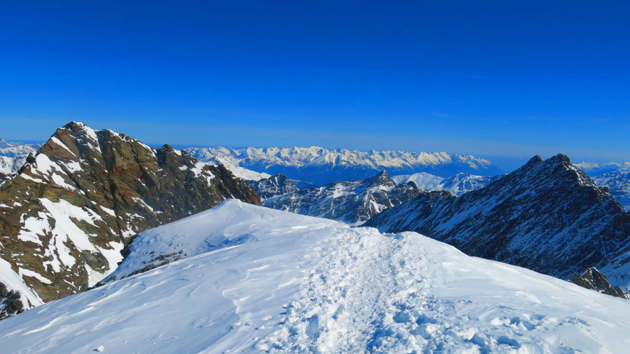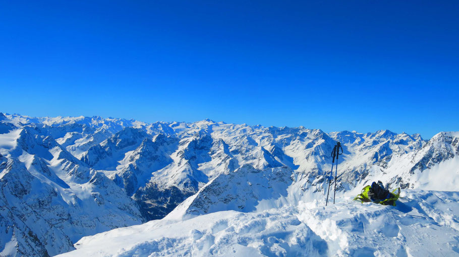 Vor allem das Panorama nach Westen ist faszinierend, mit der hier alles überragenden Wildspitze (3.768m) in Bildmitte.