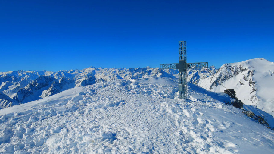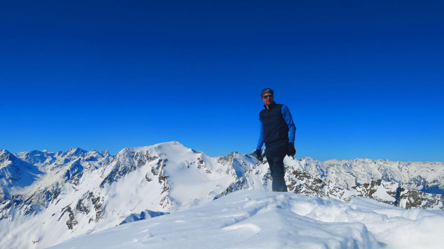 Der Winnebacher Weißkogel (3.182m), ein Gipfel mit überragender Aussicht in die Stubaier und Ötztaler Alpen. Die viel besuchte Gegend rund um Lüsens suche ich bevorzugt erst im Spätwinter und Frühjahr auf.