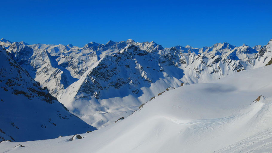Rasch ist man wieder zurück am Winnebachjoch, ein letzter Blick in die Ötztaler Alpen.