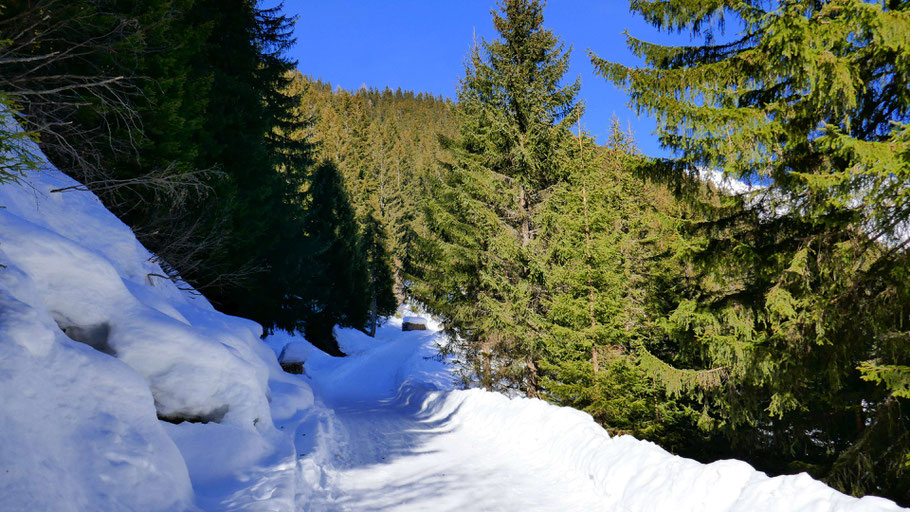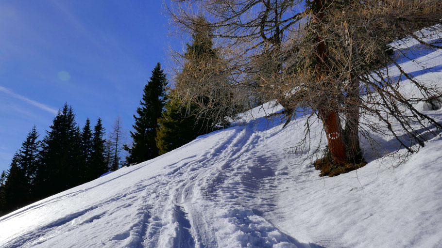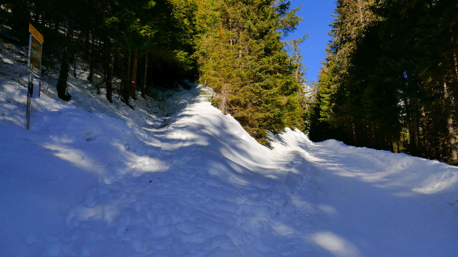 Zuerst ein paar Hundert Meter auf der Rodelbahn in Richtung Peeralm.