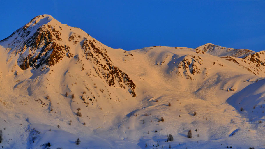 Die Naviser Sonnenspitze in der untergehenden Abendsonne.
