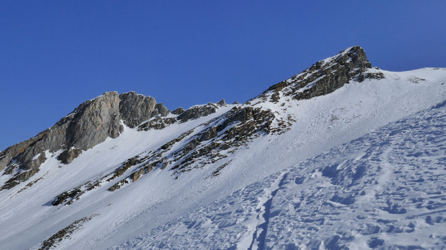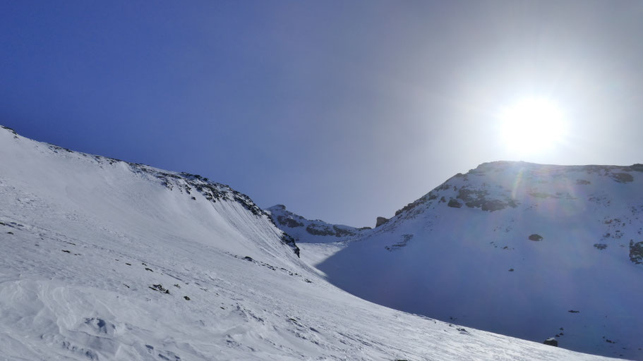 Das Jöchl selbst (2.252m) berührt man nicht, ich lege meine Spur direkt in den nun aufsteilenden Nordhang.