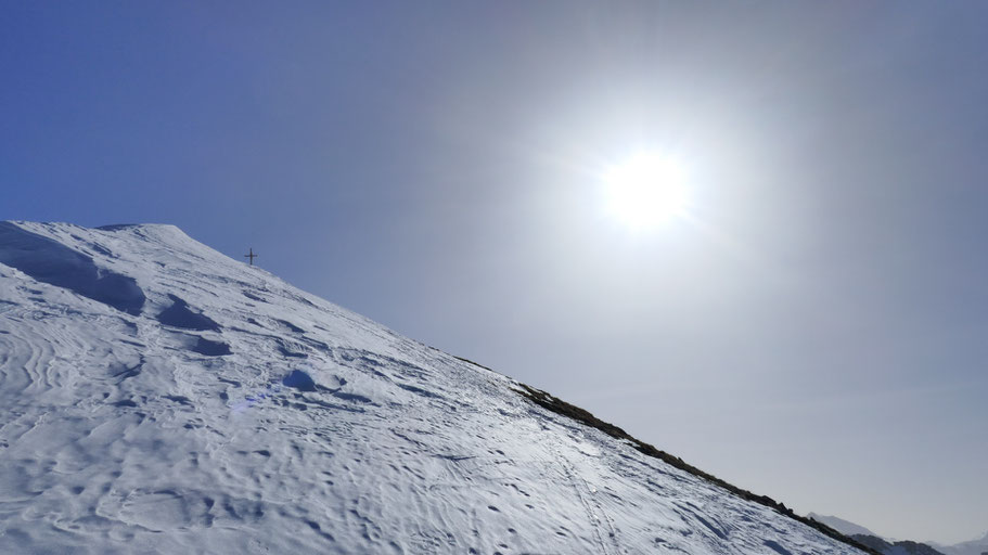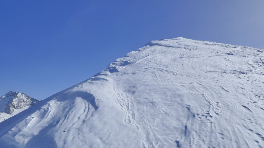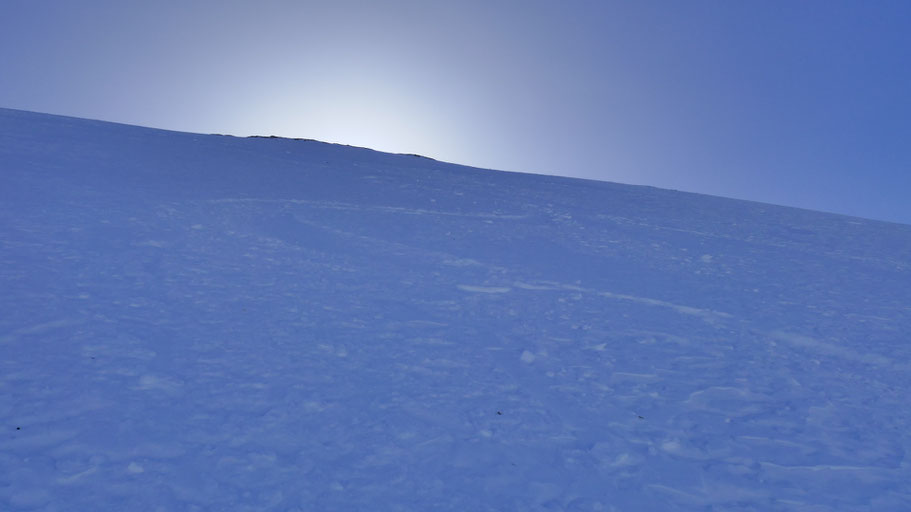 Auf den letzten 100 Höhenmetern komme ich in die Sonne, im letzten Teil wie zu erwarten stark abgeblasen.