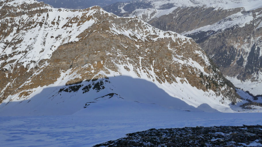Das gibt den Charakter ganz gut wieder. Der obere Hang erreicht nicht ganz 40° über rund 150 Höhenmeter.