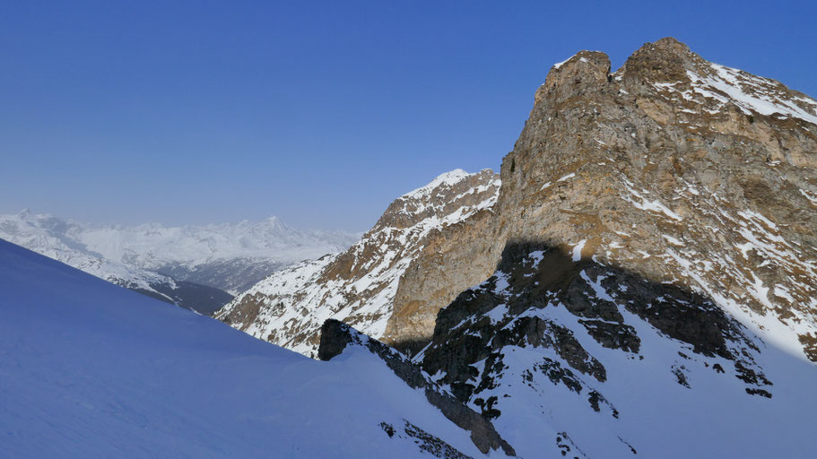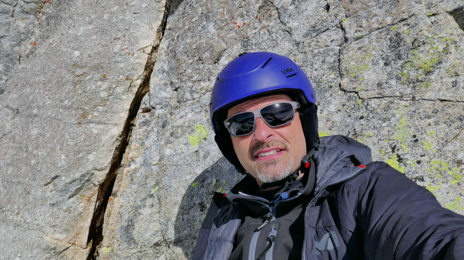 Nach über 1.900m Aufstieg freue ich mich auf die Abfahrt. Kurz noch einen Sprung herüber zur 'Langen Wand'.