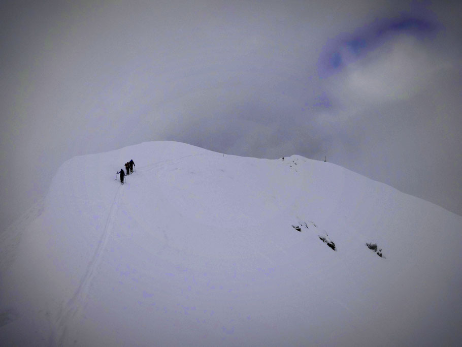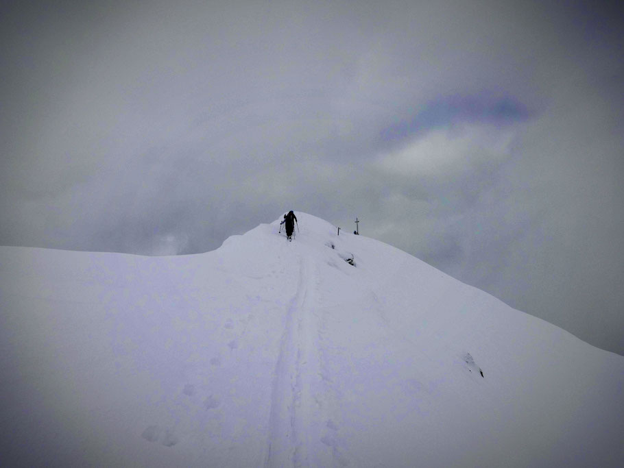 Die letzten Meter - der Grat ist hier bereits breiter, blauer Himmel aber nur kurz da.