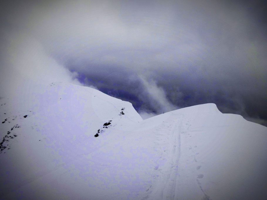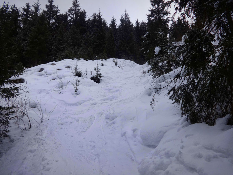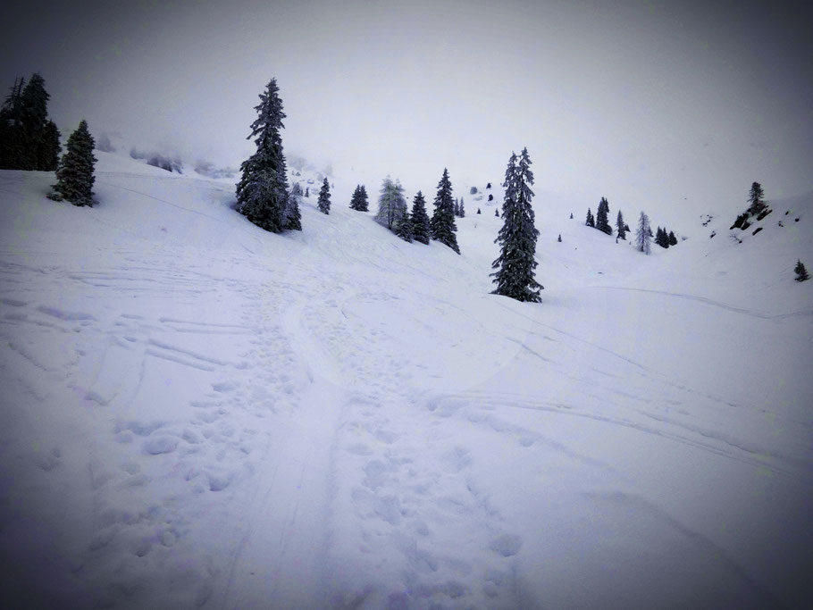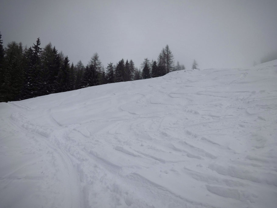 Ich halte mich weiter eher auf dem Sommer-Wanderweg. Das Gelände ist hier grandios für Pulverabfahrt, dieses Mal ist alles schon gut abgefahren.