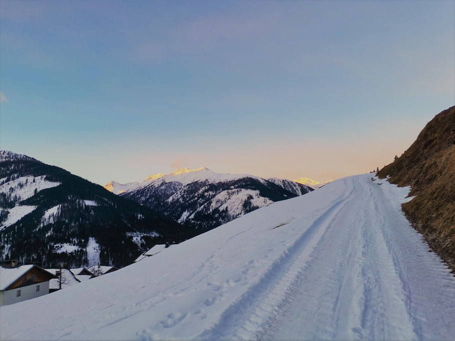 Früh morgens geht es in Rals beim Parkplatz der Jausenstation Mitterdorfer los mit der Skitour. Die Rodelbahn, die im untersten Teil auch die Abfahrtsstrecke sein