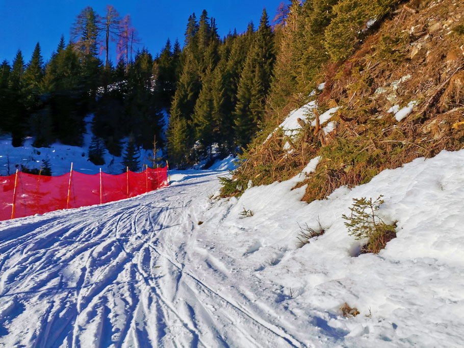 Der erste Teil der "Abfahrt" ist samt Gegenanstieg bis zum Skigebiet mehr was für Langläufer, aber zumindest gleich mal erledigt.
