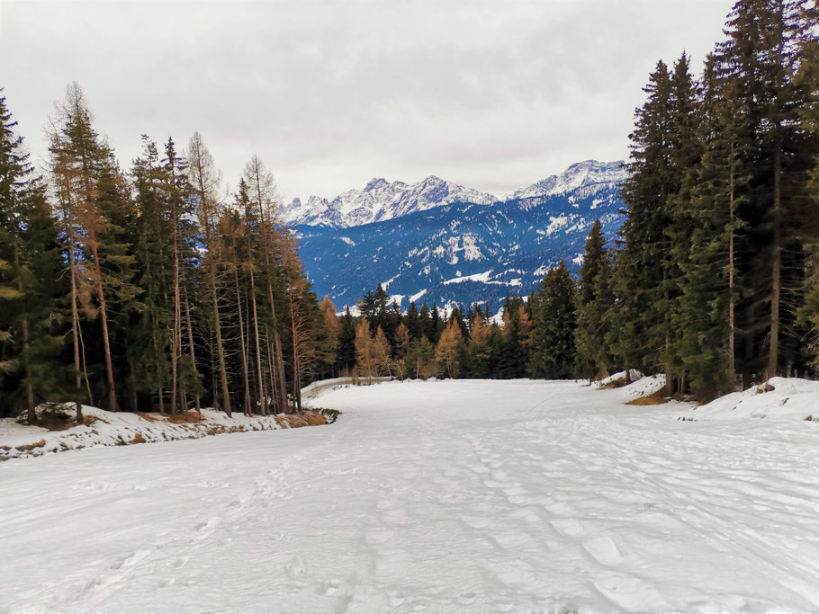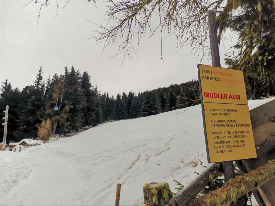 Die Rodelbahn der Mudler Alm ist errreicht - nun wartet das gemütliche Gleitstück.